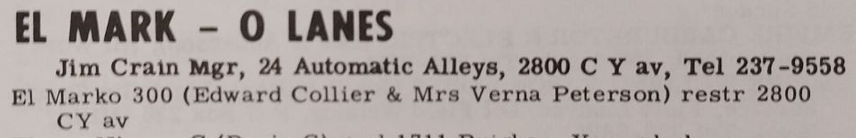 | Names: | El Mark-O Lanes (1960 - present) |