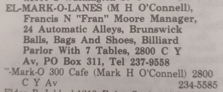 M H O'Connell was the owner and Francis N Moore was the manager per the 1970 Casper Polk Directory.