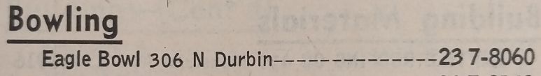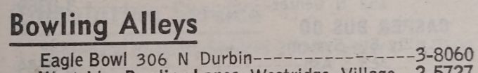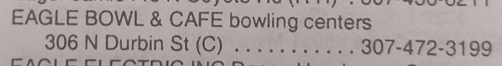 In 1956, the 8th Annual Wyoming Men's State Bowling Tournament was held here.